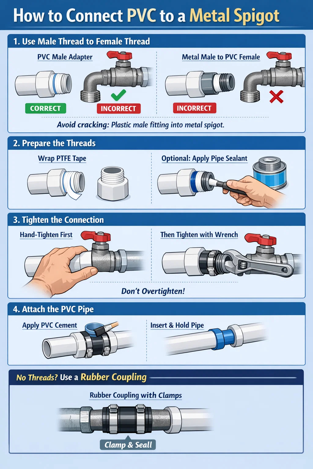 PVC-putkien liittäminen metallitappiin (metallihana tai venttiili) on yleinen tehtävä kodin putkien korjauksissa. Muovin ja metallin erilaisen kovuuden ja lämpölaajenemis-/-kutistumisasteen vuoksi liitännät vaativat erityistä varovaisuutta vuotojen tai halkeamien estämiseksi.