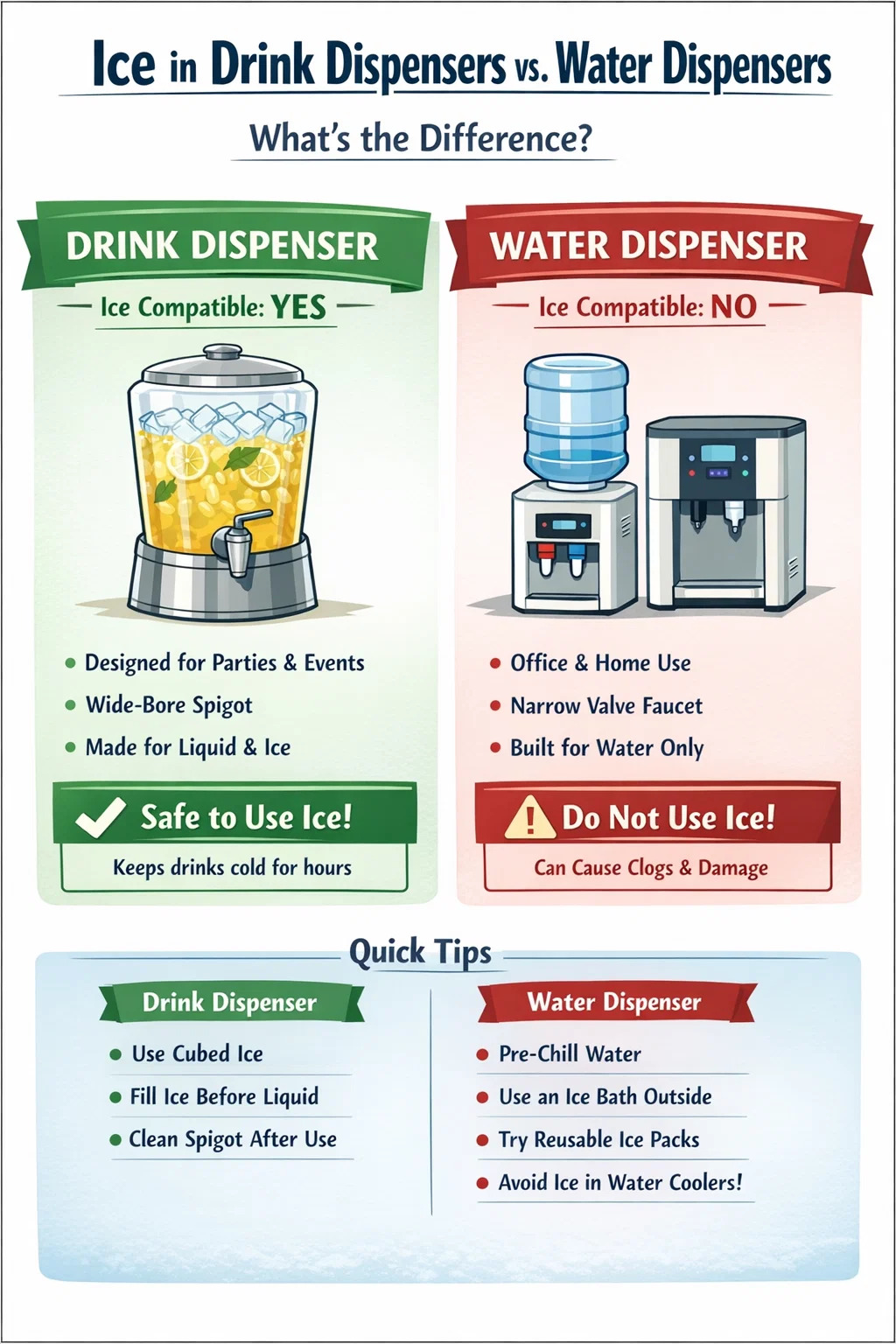 Jos tavoitteenasi on kylmät juomat ilman riskejä, joita jää tuo yhteensopimattomiin annostelijoihin, useilla käytännöllisillä vaihtoehdoilla saavutetaan sama tulos ilman laitevaurioita.