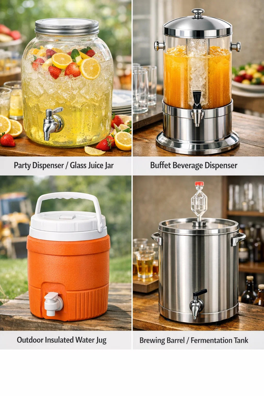 Näillä pienellä hanalla varustetuilla astioilla, joihin ihmiset kerääntyvät hakemaan juomia, on jokapäiväisessä elämässämme useita eri nimiä ulkonäön ja käyttötarkoituksen mukaan. Jos haet verkosta tai kysyt kaupasta, seuraavien nimien käyttäminen saat varmasti oikean tuloksen: