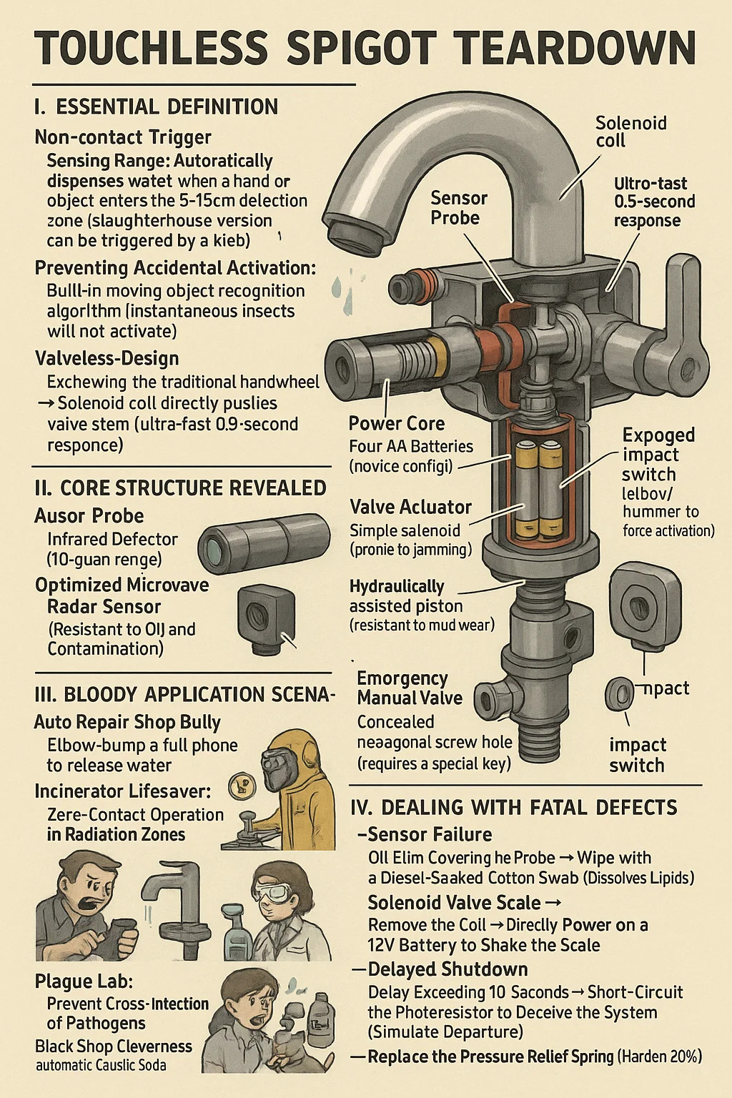 Anturi-alue: Annostuu vettä automaattisesti, kun käsi tai esine siirtyy 5-15 cm: n havaitsemisvyöhykkeelle (teurastamoversio voidaan laukaista potku)